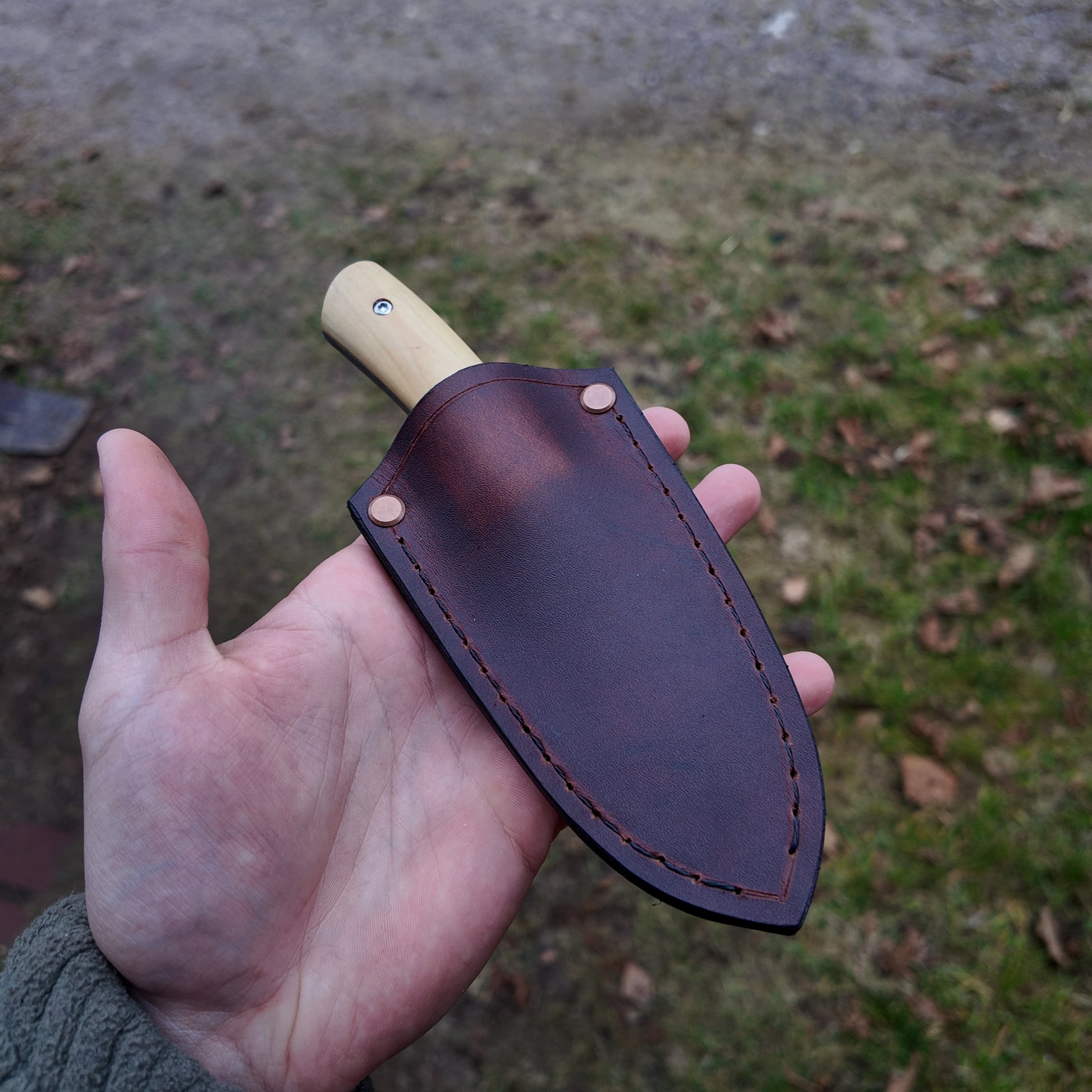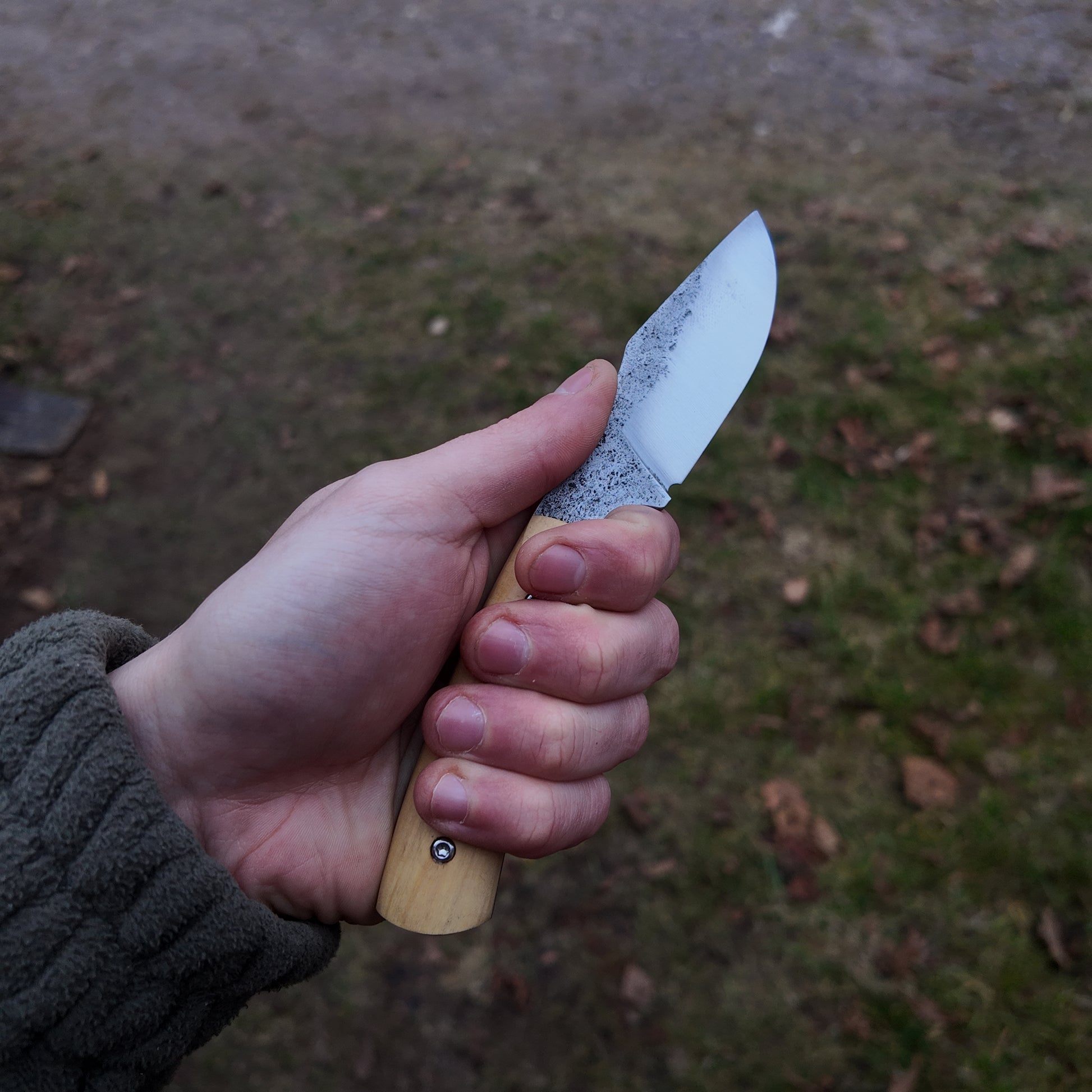manche en Buis Vosgien monté sur vis inox têtes bombées.